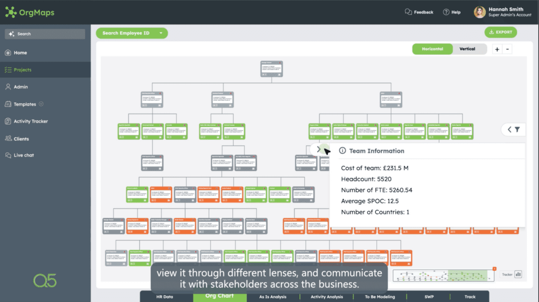 OrgMaps started as a dream made by a handful of Q5ers to make organisation transformation easier and increase client-satisfaction. That is why we took the most complex and time consuming steps of organisational design and digitised them to enable us to deliver complex transformations more efficiently and effectively. The different modules of the OrgMaps platform provide an end-to-end backbone that encapsulates the different facts of complex organisation transformation.